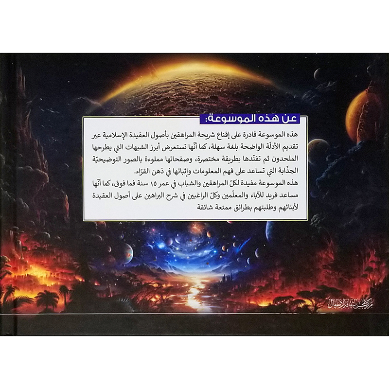 هذه الموسوعة مفيدة لكل المراهقين والشباب في عمر ١٥ سنة فما فوق، كما أنها مساعد فريد للآباء والمعلمين وكل الراغبين في شرح البراهين على أصول العقيدة لأبنائهم وطلبتهم بطرائق ممتعة شائقة.